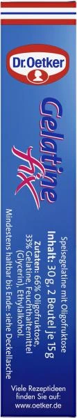 Mit Gelatine Fix von Dr. Oetker ist es jetzt noch einfacher, leckere Sahnetorten, Desserts und auch herzhafte Speisen zuzubereiten. Denn Gelatine Fix wird ohne Quellen und Aufkochen direkt in die Flüssigkeit gegeben einfach, schnell und ohne Klümpchen. Mit Gelatine Fix kann nun jeder seine Lieblingsrezepte einfach und problemlos zubereiten.