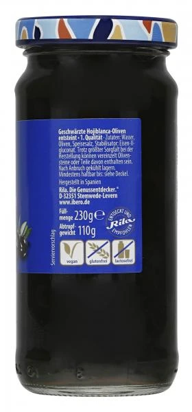 Spanische schwarze Oliven mit Kern, als Tapas, in herzhaften Salaten, als Beilage zu Gegrilltem und für kalte Platten.