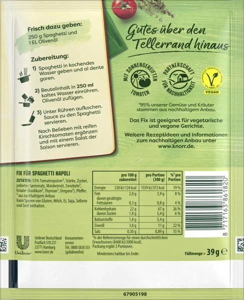 Spaghetti so lecker wie beim Italiener! Sonnengereifte Tomaten mit Kräutern fruchtig-würzig abgestimmt. Ohne Farbstoffe. Ohne geschmacksverstärkende Zusatzstoffe. Mit Meersalz.