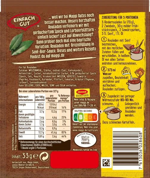 Artikelnummer: 4502070332 Kategorien: Fertiggerichte & Konserven, Fix für Fleisch, Fix-Produkte Schlagwort: Maggi