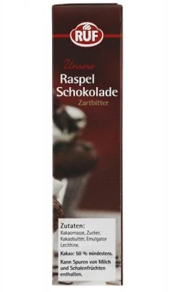 Raspelschokolade – der Klassiker unter den Tortendekorationen. Aber auch zu Recht, denn die Raspel sind vielseitig einsetzbar und passen zu beinahe jeder süßen Köstlichkeit. Darüber hinaus veredeln Schokoraspel so manch eine Torte, die ohne Raspel ziemlich nackt aussehen würde. Die feinherben Zartbitterraspel sind herrlich aromatisch und zergehen zart auf der Zunge.